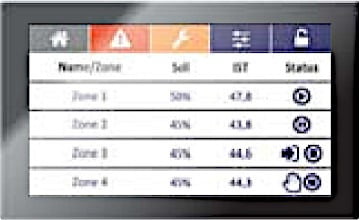 The intelligent PLC control with colour touch screen panel and easy to use navigation displays the values of the humidity sensors and ensures perfect room air humidity.